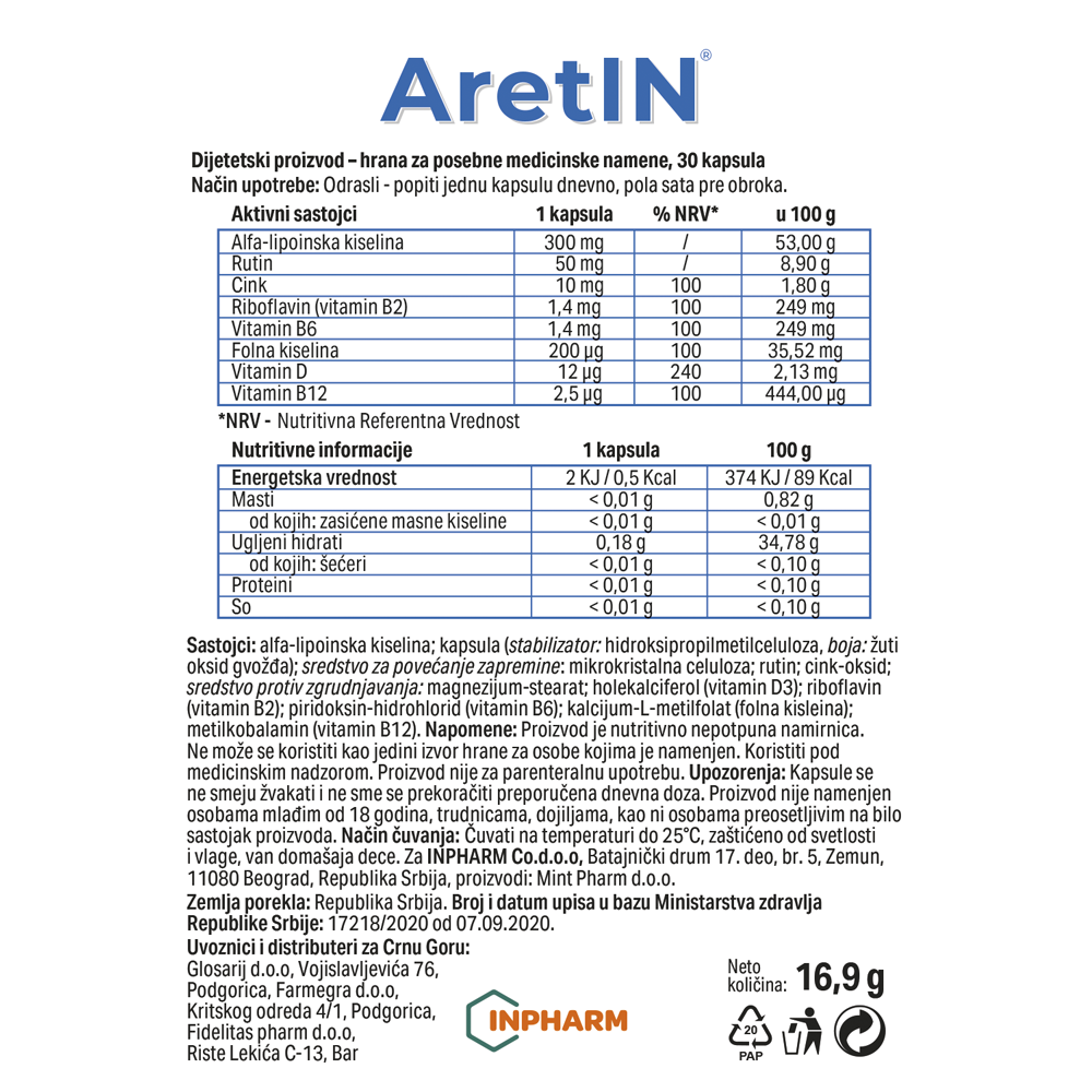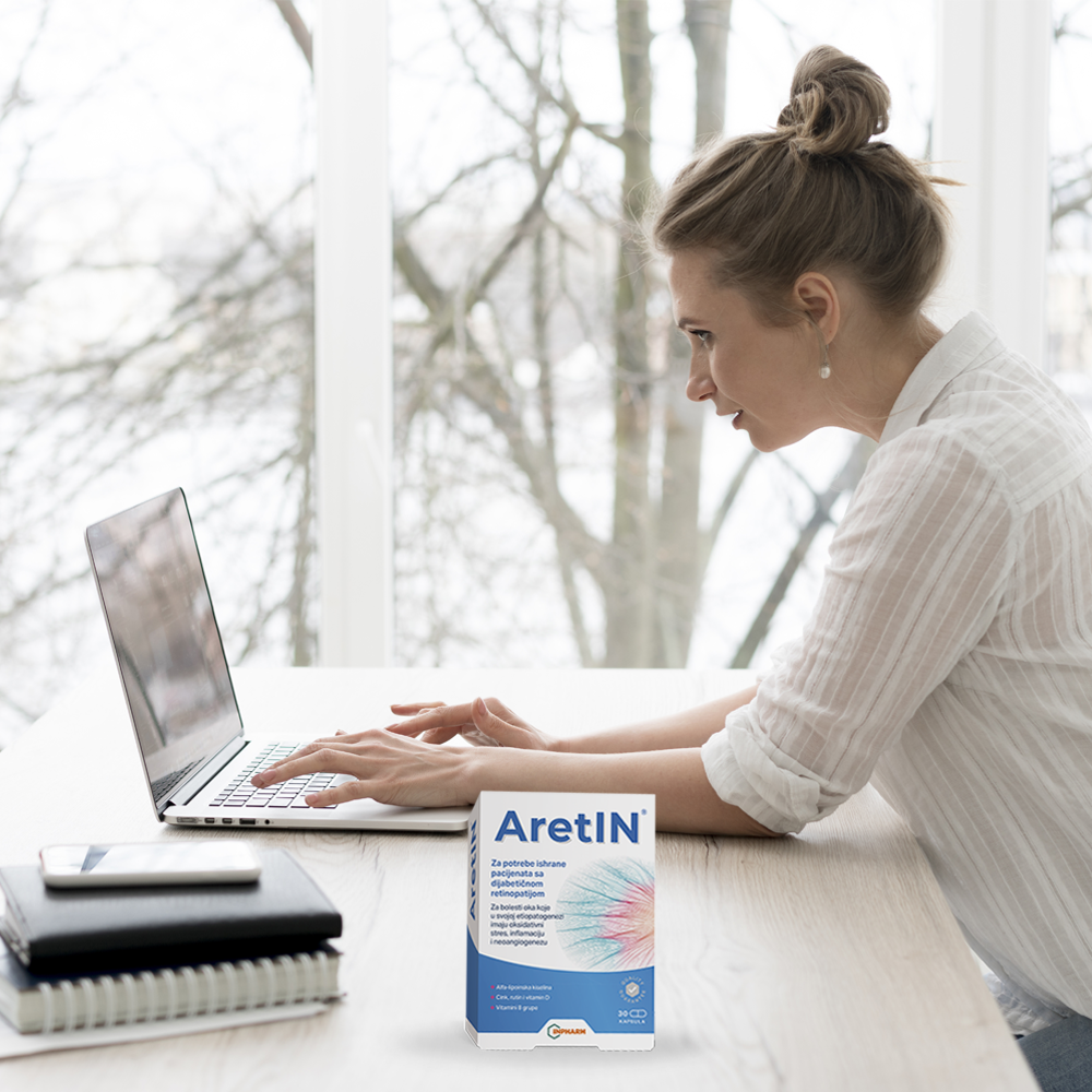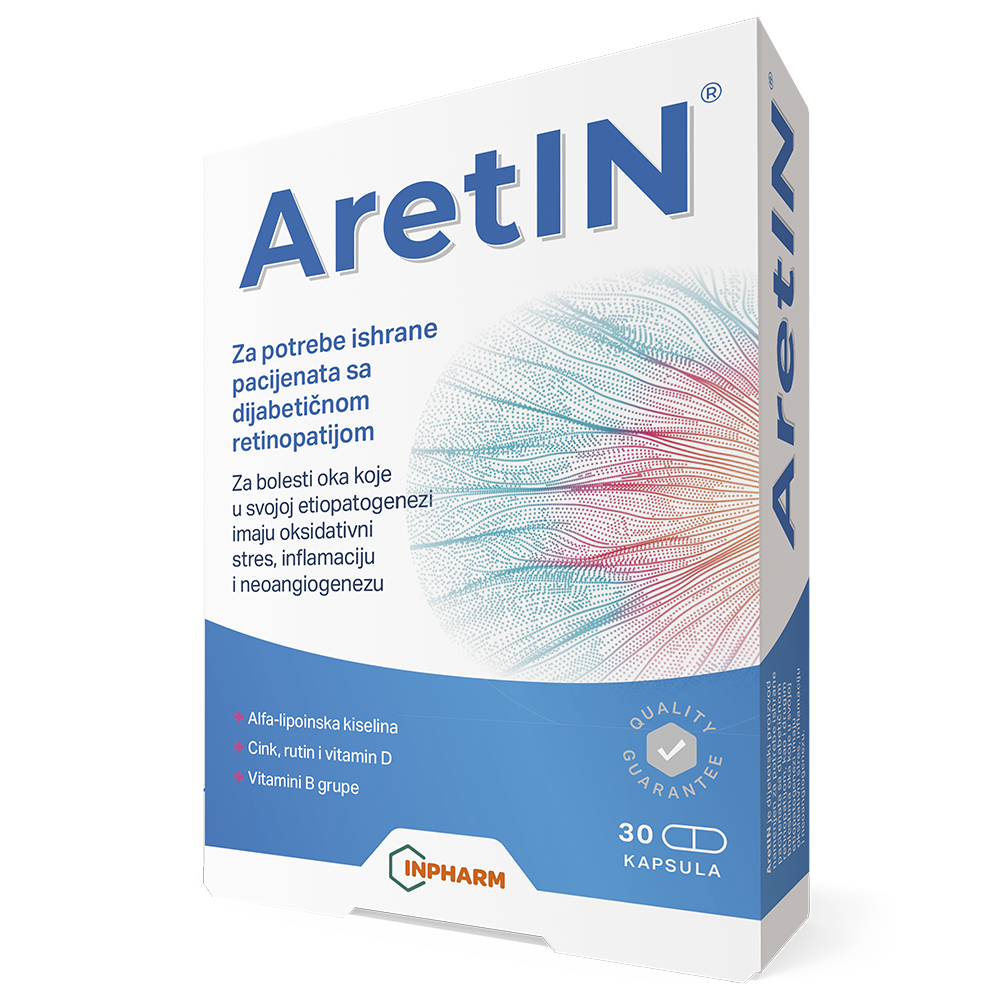 AretIN je dodatak ishrani namenjen očuvanju i unapređenju zdravlja oka, pre svega kod pacijenata koji boluju od dijabetičke retinopatije.
