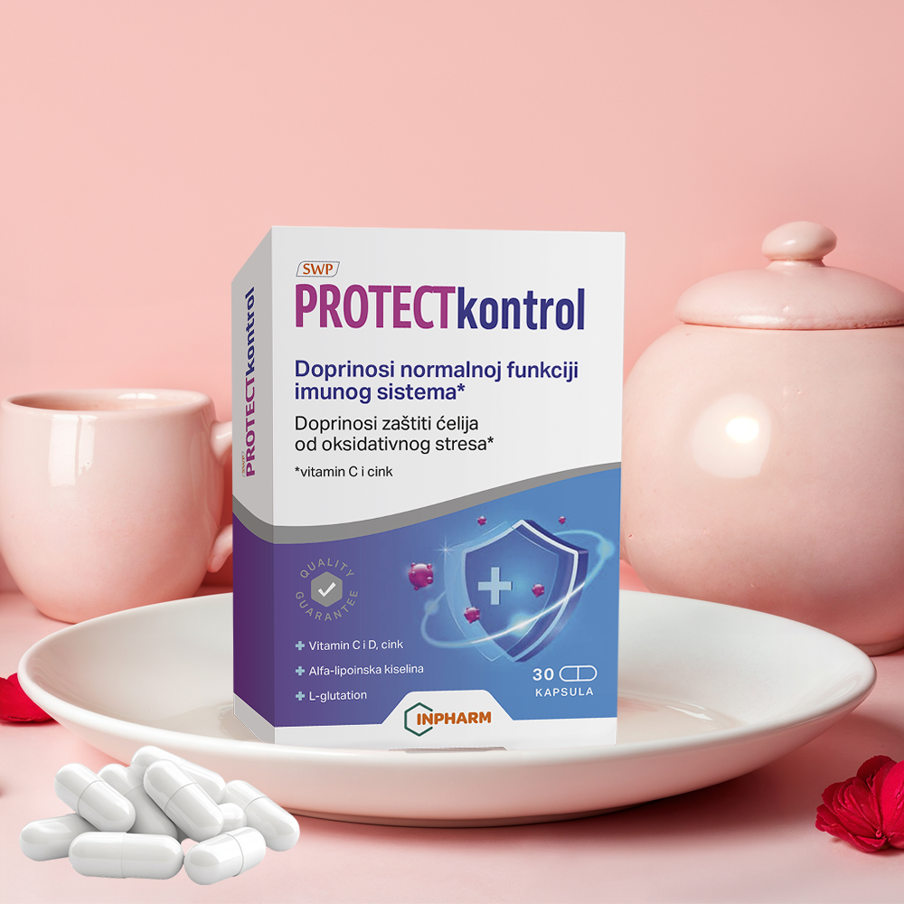 Saveznik vašeg imuniteta. PROTECTkontrol je dodatak ishrani koji sadrži alfa-lipoinsku kiselinu, vitamin D, L-glutation, vitamin C i cink u obliku gastrorezistentnih kapsula biljnog porekla.